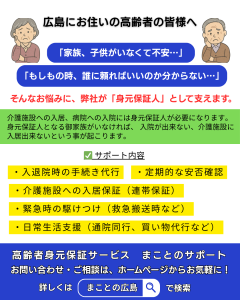 広島にお住まいの皆さまの中には、お一人での生活や、ご家族に遠方にお住まいの方がいらっしゃることで、将来への不安を感じていらっしゃる方もいらっしゃるかもしれません。