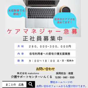 2024.12.29 お知らせ ケアマネジャー募集中!